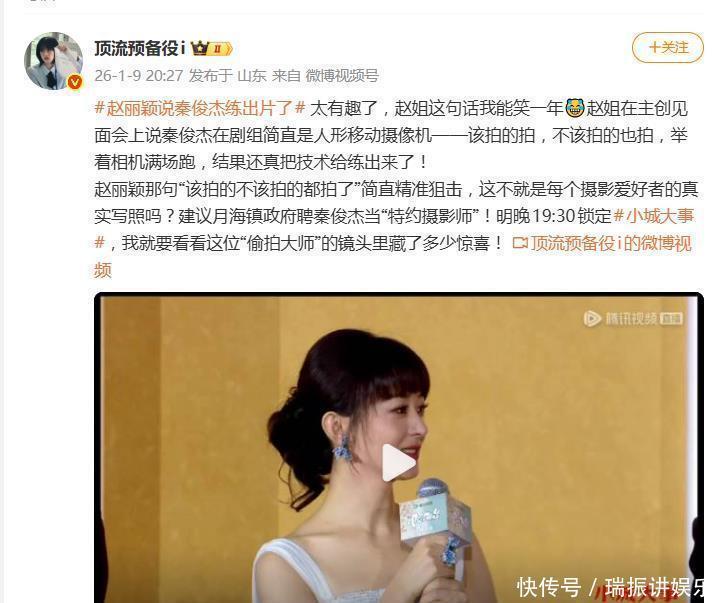 𾉍񀙙日网友爆料,《小城大事》主创见面会上,赵丽颖一句调侃直接让搭档秦俊杰火出了圈。她笑称秦俊杰在剧组简直就是“人形移动摄像机”——该拍的拍,不该拍的也拍,举着相机满场跑,结果还真把摄影技术给练出来了!这番吐槽瞬间引爆全网,不仅让“人形移动摄像机”成了热梗,更给这部新剧添了把未播先火的热柴。